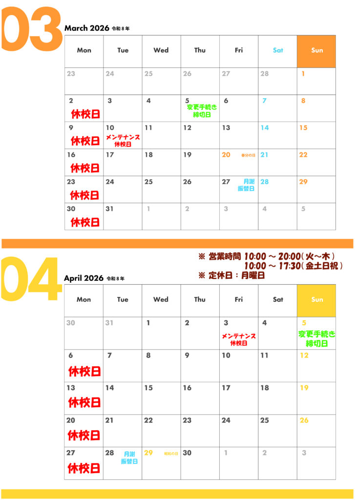 さて、3月〜4月の営業スケジュール を公開いたします📅